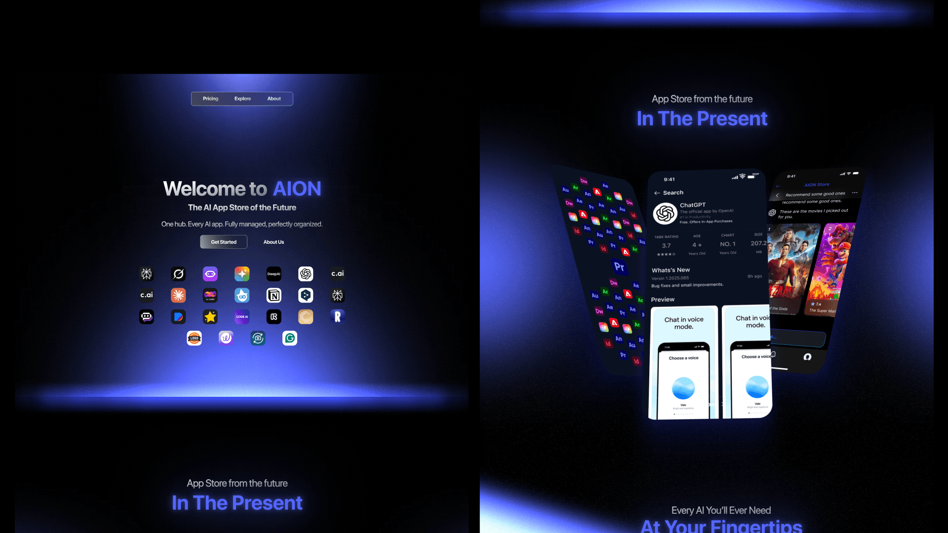 AION is a concept for an AI app store where users can browse, test, and deploy production-ready AI tools. This was a one-page landing site designed for a friend’s contest entry. While it was a practice project, the goal was to create something polished and engaging that clearly communicated the app’s value in a single scroll.