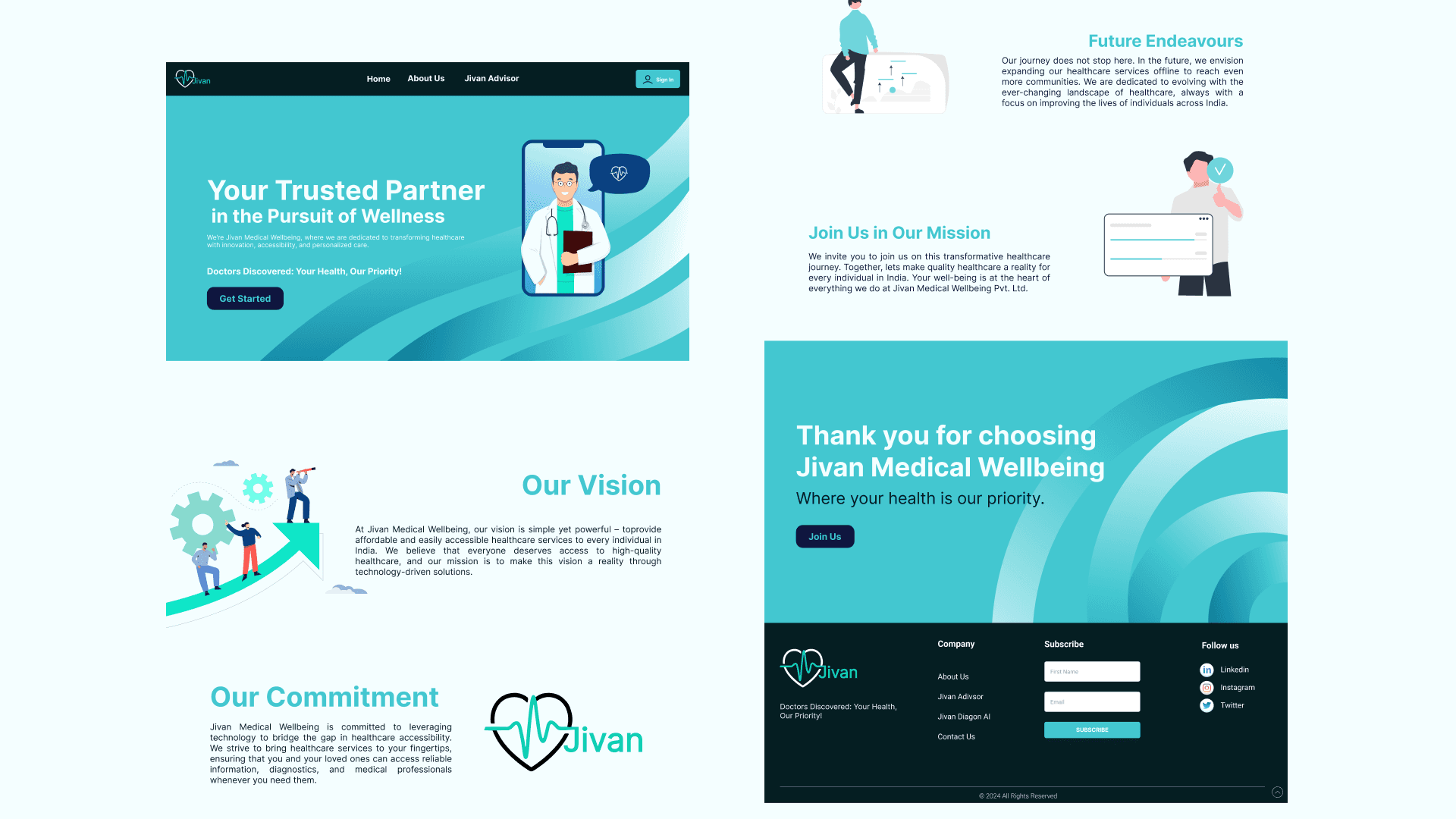 Jivan Health is a health tech startup building AI-powered healthcare tools and a platform aligned with India’s ABDM (Ayushman Bharat Digital Mission). The aim was to create a digital experience that supports both patients and clinicians while communicating the brand’s focus on accessible, tech-driven healthcare.